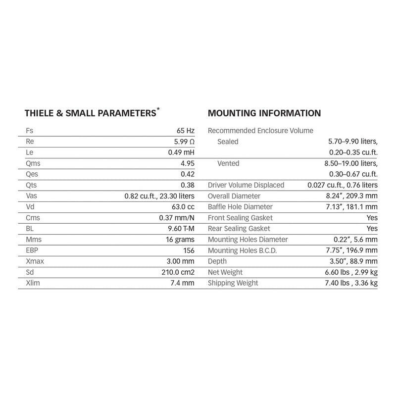 988040 Bocina Eminence Beta-8A Especificaciones Diámetro externo: 8” Impedancia nominal: 8 ohms Manejo de potencia: 225 W Sensibilidad: 95.1 dB Rango de frecuencia: 78 Hz – 4.5 KHz Frecuencia de resonancia (Fs): 65 Hz Diámetro de la bobina: 2” Tipo de magneto: Ferrita Peso del magneto: 34 oz. Material de la canasta: Acero TE PEDIMOS QUE ANTES DE OFERTAR CONFIRMES Y/O VALIDEZ LA EXISTENCIA DE NUESTROS PRODUCTOS, YA QUE DEBIDO A LA DEMANDA ESTOS PUEDEN LLEGAR A ESCASEAR. Forma de comprar: -En caso de que requieras comprar más de una pieza del mismo producto te pedimos que por favor ofertes y/o compres de manera individual (por pieza) ya que de esta manera cada producto viajará amparado con su propio número de guía y su respectivo seguro. Garantías: -Todas nuestras garantías amparan defectos de fábrica, no así el mal uso o el mal manejo de los equipos. FACTURACIÓN: Todos nuestros productos ya Incluyen IVA y la factura ampara la legalidad al 100% de todos nuestros productos. Si deseas factura favor de solicitarla después de haber realizado tu compra. Una vez que hayas recibido el producto a tu entera satisfacción procederemos a enviarte tu factura vía correo electrónico. FORMAS DE PAGO: Pago a través de Mercado Pago que incluye: - Pagos a Meses sin intereses solo con tarjeta de Crédito bancarias participantes. - Pagos con tarjeta de crédito o débito VISA, Mastercard o American Express - Pagos en efectivo en Oxxo, 7 eleven - Saldo en Mercado Pago Si pagaste en OXXO, Seven Eleven, o deposito en efectivo, tu compra tardará en acreditarse, por lo que una vez acreditado tu pago podrás escribirnos desde tu compra. ENVÍOS: *Todos nuestros envíos van asegurados al 100% y se realizan de lunes a viernes después de las 2:00 p.m. El tiempo de entrega depende completamente de la empresa de mensajería y queda fuera de toda nuestra responsabilidad cualquier retraso que se pueda presentar por parte de la mensajería. *Si tu compra se acredita después de la 1:00 p.m. tu paquete se enviará al día hábil siguiente. *Sábados, Domingos y días festivos no hay recolección por parte de las paqueterías. LAS IMÁGENES EXPUESTAS SON CON FINES ILUSTRATIVOS. Las Especificaciones y las imágenes están sujetas a cambios sin previo aviso. Los precios pueden variar sin previo aviso. En caso de que el producto no se encuentre en existencia o el precio sea incorrecto, nos reservamos el derecho de cancelar las órdenes. TE PEDIMOS QUE ANTES DE OFERTAR CONFIRMES Y/O VALIDEZ LA EXISTENCIA DE NUESTROS PRODUCTOS, YA QUE DEBIDO A LA DEMANDA ESTOS PUEDEN LLEGAR A ESCASEAR. Forma de comprar: -En caso de que requieras comprar más de una pieza del mismo producto te pedimos que por favor ofertes y/o compres de manera individual (por pieza) ya que de esta manera cada producto viajará amparado con su propio número de guía y su respectivo seguro. Garantías: -Todas nuestras garantías amparan defectos de fábrica, no así el mal uso o el mal manejo de los equipos. FACTURACIÓN: Todos nuestros productos ya Incluyen IVA y la factura ampara la legalidad al 100% de todos nuestros productos. Si deseas factura favor de solicitarla después de haber realizado tu compra. Una vez que hayas recibido el producto a tu entera satisfacción procederemos a enviarte tu factura vía correo electrónico. FORMAS DE PAGO: Pago a través de Mercado Pago que incluye: - Pagos a Meses sin intereses solo con tarjeta de Crédito bancarias participantes. - Pagos con tarjeta de crédito o débito VISA, Mastercard o American Express - Pagos en efectivo en Oxxo, 7 eleven - Saldo en Mercado Pago Si pagaste en OXXO, Seven Eleven, o deposito en efectivo, tu compra tardará en acreditarse, por lo que una vez acreditado tu pago podrás escribirnos desde tu compra. ENVÍOS: *Todos nuestros envíos van asegurados al 100% y se realizan de lunes a viernes después de las 2:00 p.m. El tiempo de entrega depende completamente de la empresa de mensajería y queda fuera de toda nuestra responsabilidad cualquier retraso que se pueda presentar por parte de la mensajería. *Si tu compra se acredita después de la 1:00 p.m. tu paquete se enviará al día hábil siguiente. *Sábados, Domingos y días festivos no hay recolección por parte de las paqueterías. LAS IMÁGENES EXPUESTAS SON CON FINES ILUSTRATIVOS. Las Especificaciones y las imágenes están sujetas a cambios sin previo aviso. Los precios pueden variar sin previo aviso. En caso de que el producto no se encuentre en existencia o el precio sea incorrecto, nos reservamos el derecho de cancelar las órdenes.