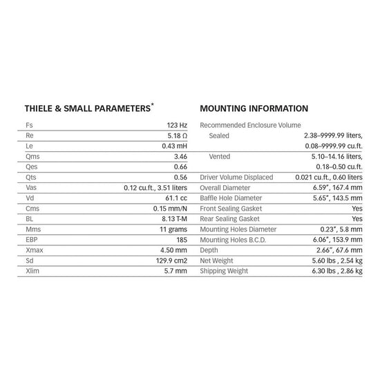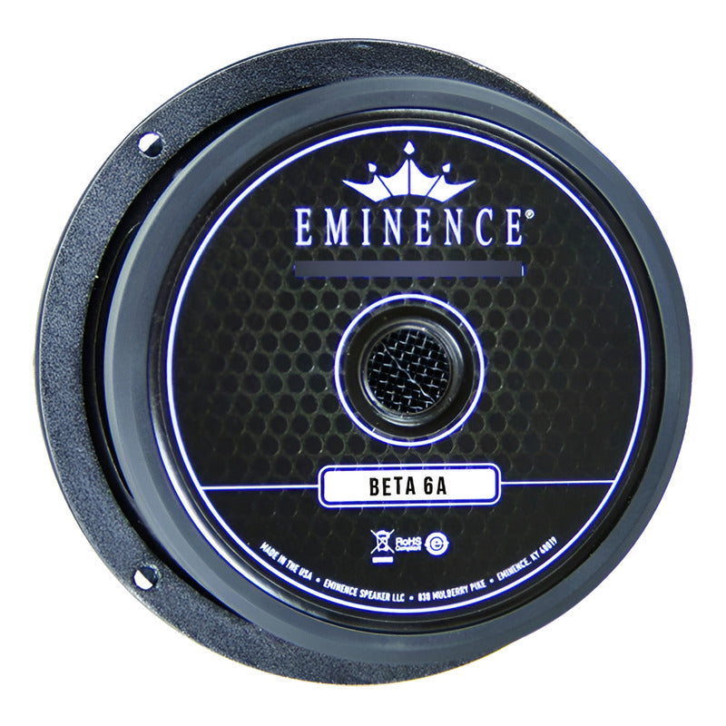 988038 Bocina Eminence Beta-6A Especificaciones Diámetro externo: 6.5” Impedancia nominal: 8 ohms Manejo de potencia: 175 W Sensibilidad: 94 dB Rango de frecuencia: 95 Hz –4 KHz Frecuencia de resonancia (Fs): 123 Hz Diámetro de la bobina: 2” Tipo de magneto: Ferrita Peso del magneto: 30 oz. Material de la canasta: Acero TE PEDIMOS QUE ANTES DE OFERTAR CONFIRMES Y/O VALIDEZ LA EXISTENCIA DE NUESTROS PRODUCTOS, YA QUE DEBIDO A LA DEMANDA ESTOS PUEDEN LLEGAR A ESCASEAR. Forma de comprar: -En caso de que requieras comprar más de una pieza del mismo producto te pedimos que por favor ofertes y/o compres de manera individual (por pieza) ya que de esta manera cada producto viajará amparado con su propio número de guía y su respectivo seguro. Garantías: -Todas nuestras garantías amparan defectos de fábrica, no así el mal uso o el mal manejo de los equipos. FACTURACIÓN: Todos nuestros productos ya Incluyen IVA y la factura ampara la legalidad al 100% de todos nuestros productos. Si deseas factura favor de solicitarla después de haber realizado tu compra. Una vez que hayas recibido el producto a tu entera satisfacción procederemos a enviarte tu factura vía correo electrónico. FORMAS DE PAGO: Pago a través de Mercado Pago que incluye: - Pagos a Meses sin intereses solo con tarjeta de Crédito bancarias participantes. - Pagos con tarjeta de crédito o débito VISA, Mastercard o American Express - Pagos en efectivo en Oxxo, 7 eleven - Saldo en Mercado Pago Si pagaste en OXXO, Seven Eleven, o deposito en efectivo, tu compra tardará en acreditarse, por lo que una vez acreditado tu pago podrás escribirnos desde tu compra. ENVÍOS: *Todos nuestros envíos van asegurados al 100% y se realizan de lunes a viernes después de las 2:00 p.m. El tiempo de entrega depende completamente de la empresa de mensajería y queda fuera de toda nuestra responsabilidad cualquier retraso que se pueda presentar por parte de la mensajería. *Si tu compra se acredita después de la 1:00 p.m. tu paquete se enviará al día hábil siguiente. *Sábados, Domingos y días festivos no hay recolección por parte de las paqueterías. LAS IMÁGENES EXPUESTAS SON CON FINES ILUSTRATIVOS. Las Especificaciones y las imágenes están sujetas a cambios sin previo aviso. Los precios pueden variar sin previo aviso. En caso de que el producto no se encuentre en existencia o el precio sea incorrecto, nos reservamos el derecho de cancelar las órdenes. TE PEDIMOS QUE ANTES DE OFERTAR CONFIRMES Y/O VALIDEZ LA EXISTENCIA DE NUESTROS PRODUCTOS, YA QUE DEBIDO A LA DEMANDA ESTOS PUEDEN LLEGAR A ESCASEAR. Forma de comprar: -En caso de que requieras comprar más de una pieza del mismo producto te pedimos que por favor ofertes y/o compres de manera individual (por pieza) ya que de esta manera cada producto viajará amparado con su propio número de guía y su respectivo seguro. Garantías: -Todas nuestras garantías amparan defectos de fábrica, no así el mal uso o el mal manejo de los equipos. FACTURACIÓN: Todos nuestros productos ya Incluyen IVA y la factura ampara la legalidad al 100% de todos nuestros productos. Si deseas factura favor de solicitarla después de haber realizado tu compra. Una vez que hayas recibido el producto a tu entera satisfacción procederemos a enviarte tu factura vía correo electrónico. FORMAS DE PAGO: Pago a través de Mercado Pago que incluye: - Pagos a Meses sin intereses solo con tarjeta de Crédito bancarias participantes. - Pagos con tarjeta de crédito o débito VISA, Mastercard o American Express - Pagos en efectivo en Oxxo, 7 eleven - Saldo en Mercado Pago Si pagaste en OXXO, Seven Eleven, o deposito en efectivo, tu compra tardará en acreditarse, por lo que una vez acreditado tu pago podrás escribirnos desde tu compra. ENVÍOS: *Todos nuestros envíos van asegurados al 100% y se realizan de lunes a viernes después de las 2:00 p.m. El tiempo de entrega depende completamente de la empresa de mensajería y queda fuera de toda nuestra responsabilidad cualquier retraso que se pueda presentar por parte de la mensajería. *Si tu compra se acredita después de la 1:00 p.m. tu paquete se enviará al día hábil siguiente. *Sábados, Domingos y días festivos no hay recolección por parte de las paqueterías. LAS IMÁGENES EXPUESTAS SON CON FINES ILUSTRATIVOS. Las Especificaciones y las imágenes están sujetas a cambios sin previo aviso. Los precios pueden variar sin previo aviso. En caso de que el producto no se encuentre en existencia o el precio sea incorrecto, nos reservamos el derecho de cancelar las órdenes.