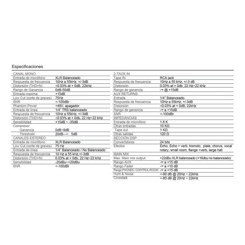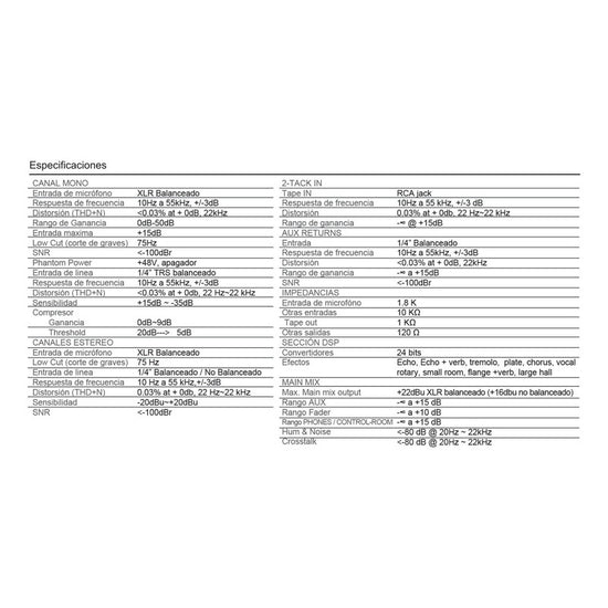 982261 Mezcladora Análoga Claymore CLY-124CX Claymore® presenta su modelo CLY 124CX, una mezcladora analógica de 12 canales que incluye compresores, banco de efectos, ecualización semi paramétrico, salida auxiliar, phantom power, etc. Este modelo será excelente para grupos de música en vivo pequeños, que requieren de un producto robusto y probado, que cuente con la garantía de una empresa de prestigio. TE PEDIMOS QUE ANTES DE OFERTAR CONFIRMES Y/O VALIDEZ LA EXISTENCIA DE NUESTROS PRODUCTOS, YA QUE DEBIDO A LA DEMANDA ESTOS PUEDEN LLEGAR A ESCASEAR. Forma de comprar: -En caso de que requieras comprar más de una pieza del mismo producto te pedimos que por favor ofertes y/o compres de manera individual (por pieza) ya que de esta manera cada producto viajará amparado con su propio número de guía y su respectivo seguro. Garantías: -Todas nuestras garantías amparan defectos de fábrica, no así el mal uso o el mal manejo de los equipos. FACTURACIÓN: Todos nuestros productos ya Incluyen IVA y la factura ampara la legalidad al 100% de todos nuestros productos. Si deseas factura favor de solicitarla después de haber realizado tu compra. Una vez que hayas recibido el producto a tu entera satisfacción procederemos a enviarte tu factura vía correo electrónico. FORMAS DE PAGO: Pago a través de Mercado Pago que incluye: - Pagos a Meses sin intereses solo con tarjeta de Crédito bancarias participantes. - Pagos con tarjeta de crédito o débito VISA, Mastercard o American Express - Pagos en efectivo en Oxxo, 7 eleven - Saldo en Mercado Pago Si pagaste en OXXO, Seven Eleven, o deposito en efectivo, tu compra tardará en acreditarse, por lo que una vez acreditado tu pago podrás escribirnos desde tu compra. ENVÍOS: *Todos nuestros envíos van asegurados al 100% y se realizan de lunes a viernes después de las 2:00 p.m. El tiempo de entrega depende completamente de la empresa de mensajería y queda fuera de toda nuestra responsabilidad cualquier retraso que se pueda presentar por parte de la mensajería. *Si tu compra se acredita después de la 1:00 p.m. tu paquete se enviará al día hábil siguiente. *Sábados, Domingos y días festivos no hay recolección por parte de las paqueterías. LAS IMÁGENES EXPUESTAS SON CON FINES ILUSTRATIVOS. Las Especificaciones y las imágenes están sujetas a cambios sin previo aviso. Los precios pueden variar sin previo aviso. En caso de que el producto no se encuentre en existencia o el precio sea incorrecto, nos reservamos el derecho de cancelar las órdenes.